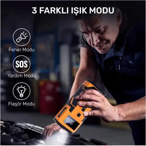 Akü Takviye Cihazı Hava Kompresörü Lastik Şişirme 150PSI 800A Güç 10000mAh Powerbank