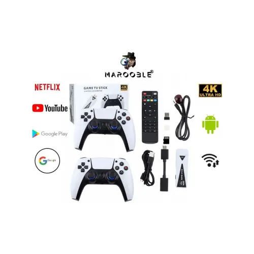 4K Game Tv Stick Android Tv Wifi Kablosuz Çift Kol Game Stick 64GB Hafıza Atari