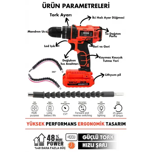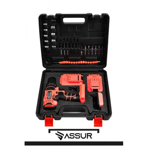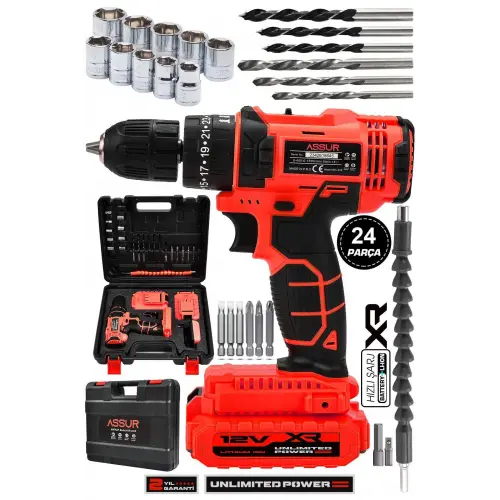 ASSUR 12v Çift Akülü Vidalama Metal Şanzıman Şarjlı Darbeli Matkap