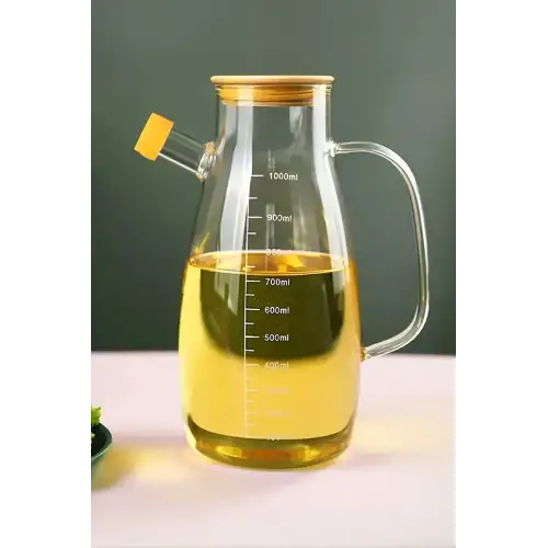 Bambu Kapaklı Yağdanlık 1000 ml Borosilikat Cam Yağlık Sirkelik Şişesi Master