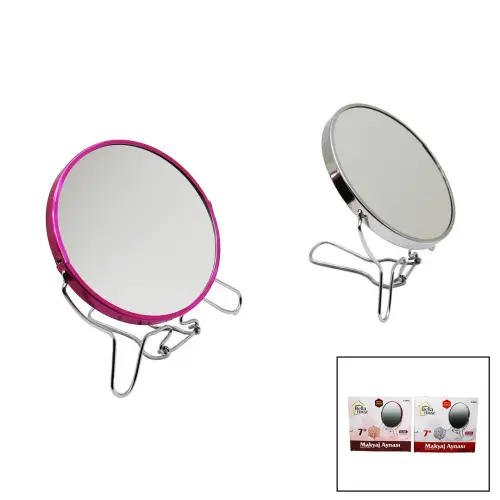 Bella House K-4542 K-0940 ( 7" ) ( Yuvarlak ) Metal Çerçeve & Ayaklı ( Çift Yönlü & Büyüteçli ) Makyaj Aynası*12x6