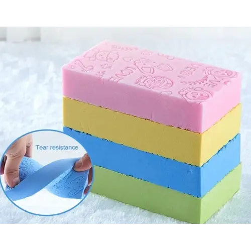 Bu banyo süngeri, süngerler ve cilt arasındaki sürtünmeyi artıran ve çamur sürtünmesini daha iyi hale getiren hassas taneciklere sahiptir.