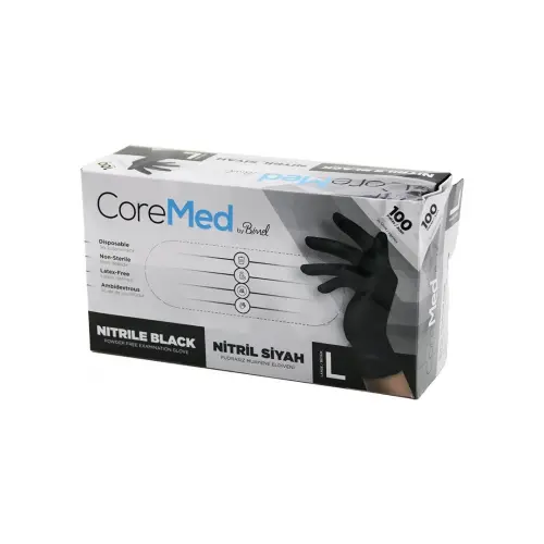 Coremed ( L ) (siyah ) ( Pudrasız ) ( Nitril ) Muayene Eldiveni ( 100lü )*1x20