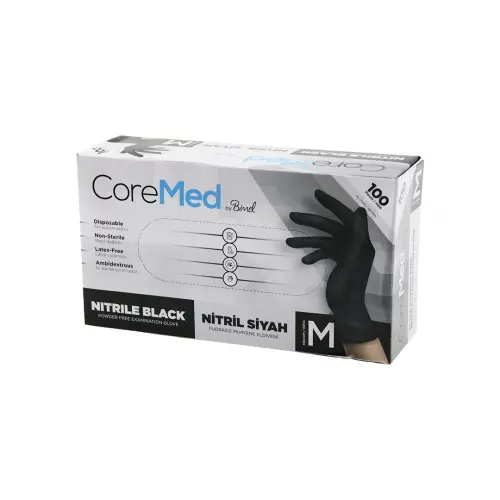 Coremed ( M ) (siyah ) ( Pudrasız ) ( Nitril ) Muayene Eldiveni ( 100lü )*1x20