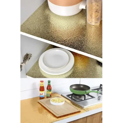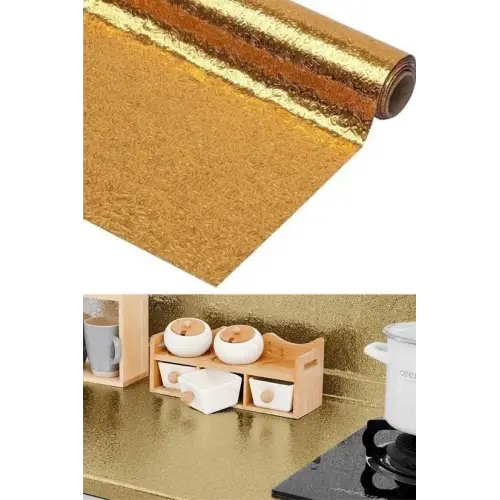 Egonex 10 Metre Kendinden Yapışkanlı Silinebilir Mutfak Tezgah Üstü Sticker Folyo Gold Renk