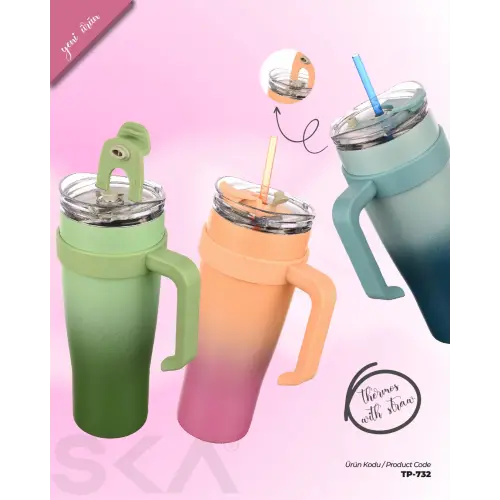 Essence 1 Litre Pipetli Termos Bardak Çift Duvarlı Termal Seyahat Bardağı