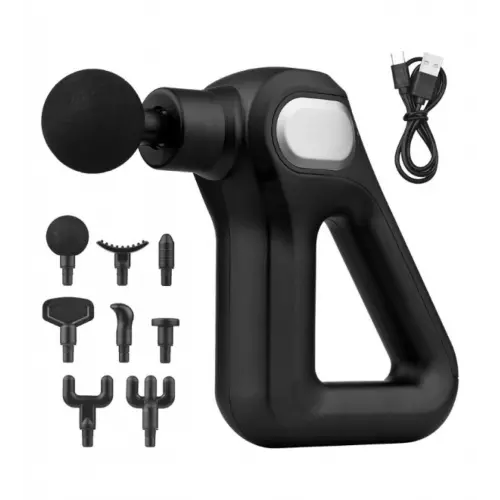Masaj Aleti 30W Motorlu Derin Doku Kas Masaj Aleti 8 Kademeli Masajı Type-C Hızlı Şarj Girişli 8 Farklı Başlıklı KH-750 Siyah
