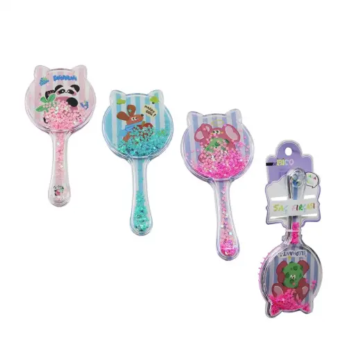İbico İ15-047 (kedi Model & Şeffaf Mika Saplı) Çocuk Saç Fırçası=(silikon) & Tarak (şeffaf Sap=hayvan Resim & Renkli Yıldızlar)*12x20
