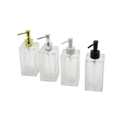 İbico İ21-042 ( Cam ) ( Kare & Şeffaf Şişe -- Buzlu Çizgili Desen) Sıvı Sabunluk (renkli Plastik Pompa)*48=k