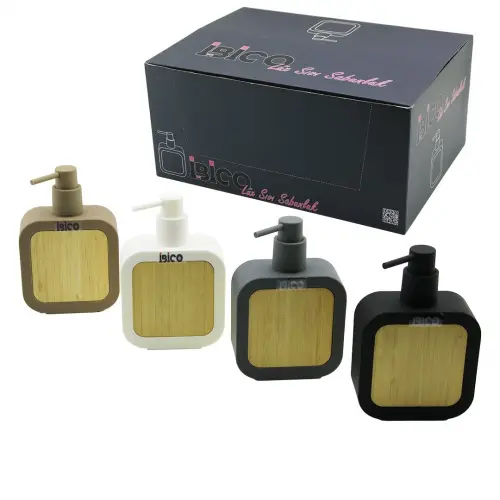 İbico İ21-059 ( Dikdörtgen & Düz ) ( Bambu & Renkli Plastik ) Sıvı Sabunluk ( 400ml )*12x4