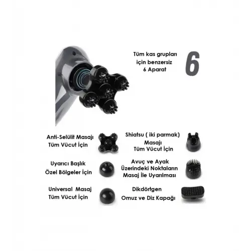 • Magic Massager Plus JY-2024B Masaj Aleti Boyun Sırt Bacak Kol Karın Bel 6 Başlıklı