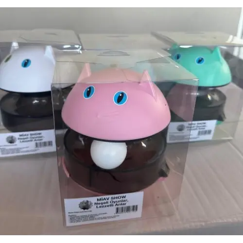 Hacıyatmaz sistemi sayesinde oyuncak devrilmez, her darbede tekrar ayağa kalkar ve mama çıkışı sağlayarak kedinizin ilgisini sürekli canlı tutar.