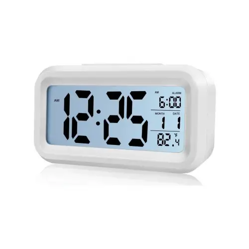 Büyük LCD ekranı, saati, tarihi ve ortam sıcaklığını net bir şekilde görüntülemenizi sağlar. Karanlık ortamlarda ekranın otomatik olarak aydınlanması, her zaman saatinizi rahatça okumanızı sağlar. 6 saniye sonra kendiliğinden kapanan ışık, enerji tasarrufu sağlarken, aynı zamanda uyku sırasında sizi rahatsız etmez.