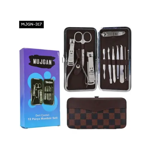 Mujgan Tırnak Makası Tırnak Bakım Seti Deri Çantalı 12 Parça Set