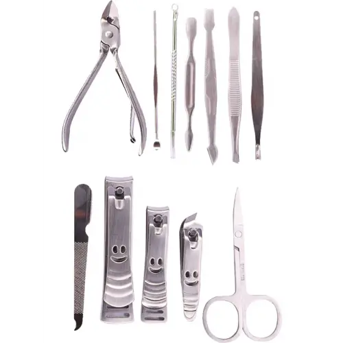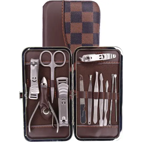 Tırnak bakımı kişisel bakım için en önemli unsurlardan biridir. Geniş çaplı içeriği sayesinde düzenli olarak manikür ve pedikür uygulaması yapabilirsiniz. Şık deri çantası ile birlikte sizlere hem profesyonel hem de evde uygulama sağlayabileceğiniz bir ürün sunulmaktadır. İçerisinde : Tırnak makası, kaş makası, tırnak eti pensi, büyük tırnak makası, kesik uçlu tırnak batık çıkarıcı makas, törpü, et itici, ayak bakımı, cımbız, kulak bakımı, komedon ve tırnat et itici bulunmaktadır.