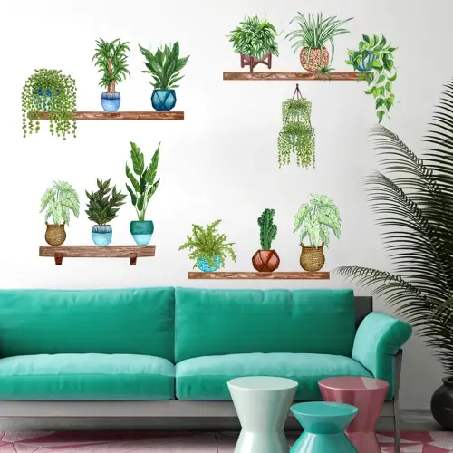 Raflı Saksılı Çiçek Tasarımlı Yapışkanlı Sticker Mc-480b