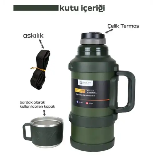 3.2 Litre Termos Suluk - Isı Yalıtımlı Termos - Paslanmaz Çelik Termos - Termos 3.2 Lt. - Kamp Termosu - Seyahat Termos 48 Saat