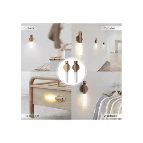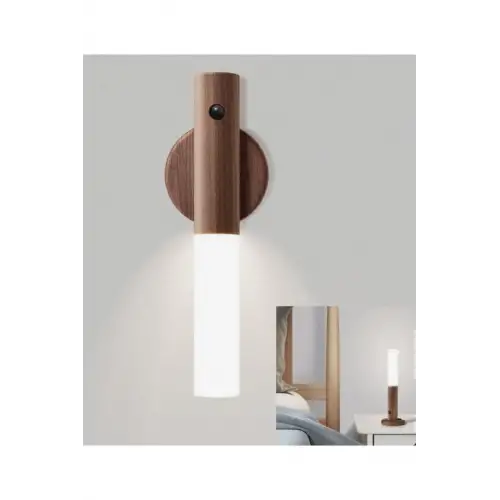 Modern Sensörlü Usb Şarjlı Mıknatıslı Taşınabilir Duvar Aplik Masa Lambası Ahşap Görünümlü Gün Işığı