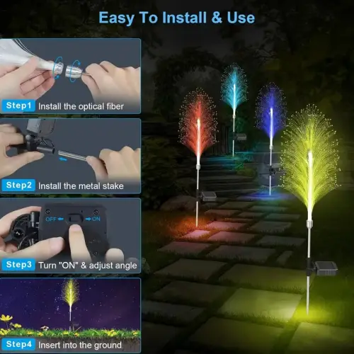 Güneş enerjili dış mekan su geçirmez ışık ---- IP65 Su Geçirmez, her türlü hava koşuluna hazır; Renk değiştiren güneş enerjili bahçe ışıkları --- geceleri otomatik olarak 7 renk değiştirir; Güneş enerjili bahçe ışıkları -- Geceleri otomatik şarj olur ve otomatik yanar; Anneler Günü için En İyi Hediyeler