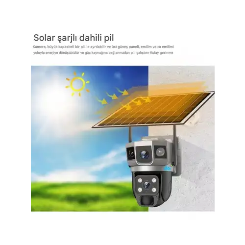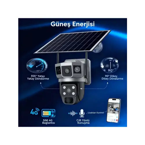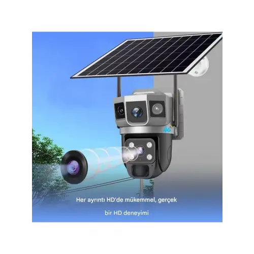 4g Solar Panelli Güvenlik Kamerası, Güneş Enerjili , 6mp Çift Lens, Sim Kartlı, Ptz, Su Geçirmez