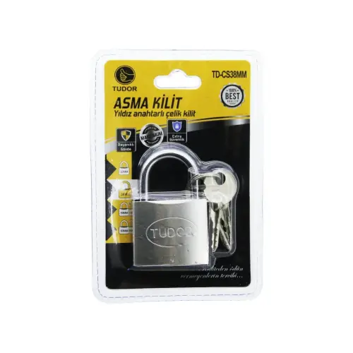 Tudor Td-cs38mm (vakumlu) (yıldız & Çivi Anahtarlı) ( 38mm & Gri ) ( Kısa Kancalı ) Çelik Asma Kilit*12x20