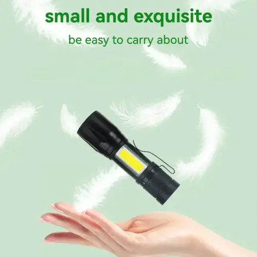 Ultra Parlak Şarj Edilebilir LED El Feneri, COB Yan Işık, Yakınlaştırma ve Uzaktan Görüş Özelliği, Taktik Kullanım İçin Klipsli Tasarım, USB Şarj, Taşınabilir Tasarım, 30 Metre Menzil, 400 Lümen, ABS Malzeme, USB Kablosu Dahil