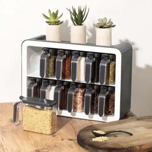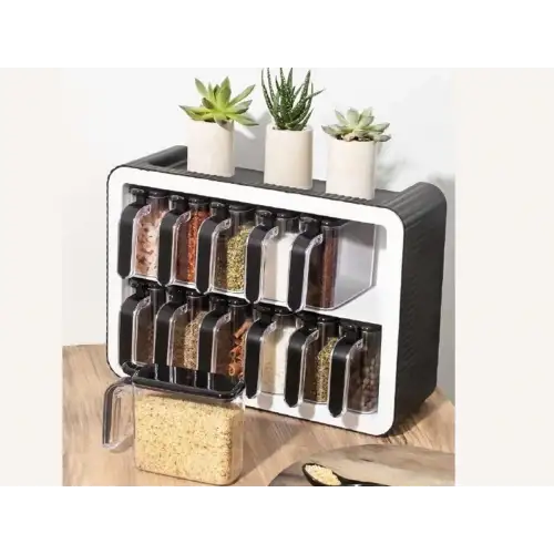 12 Adet x 300 ml 12 Adet x Kaşık 1 Adet x Baharatlık Standı 2 Adet x Yapıştırma Aparatı Toplam 24 parça ürün gönderilmektedir.
