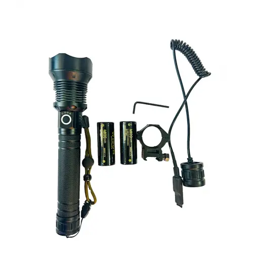 Tam Paket: Kutu içeriğinde el feneri, 2 adet pil, şarj adaptörü, şarj kablosu ve tüfek bağlantı aparatı bulunmaktadır.
